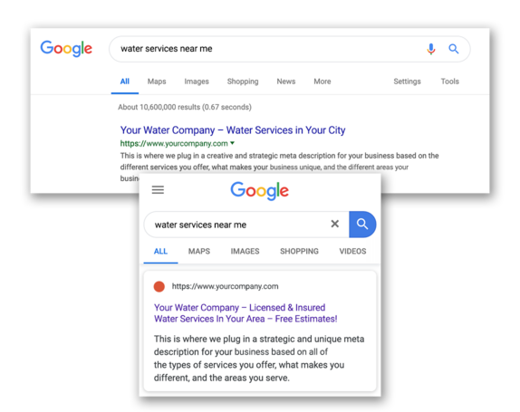 GET A FREE PROPOSALOne of the quickest ways to get your Water Filtration Business at the top of a search engines results page (SERP). These ads will allow your business to be shown when people are searching for your keywords on the SERP, Google Maps, Bing Maps, Gmail, and other search partner's websites. We will strategically research keywords, build your campaigns, write creative and compelling ad copy, and actively manage your campaign by making adjustments and tweaks to improve ROI. Our pay-per-click services include both Google Ads (formerly Google AdWords) and Bing ads.